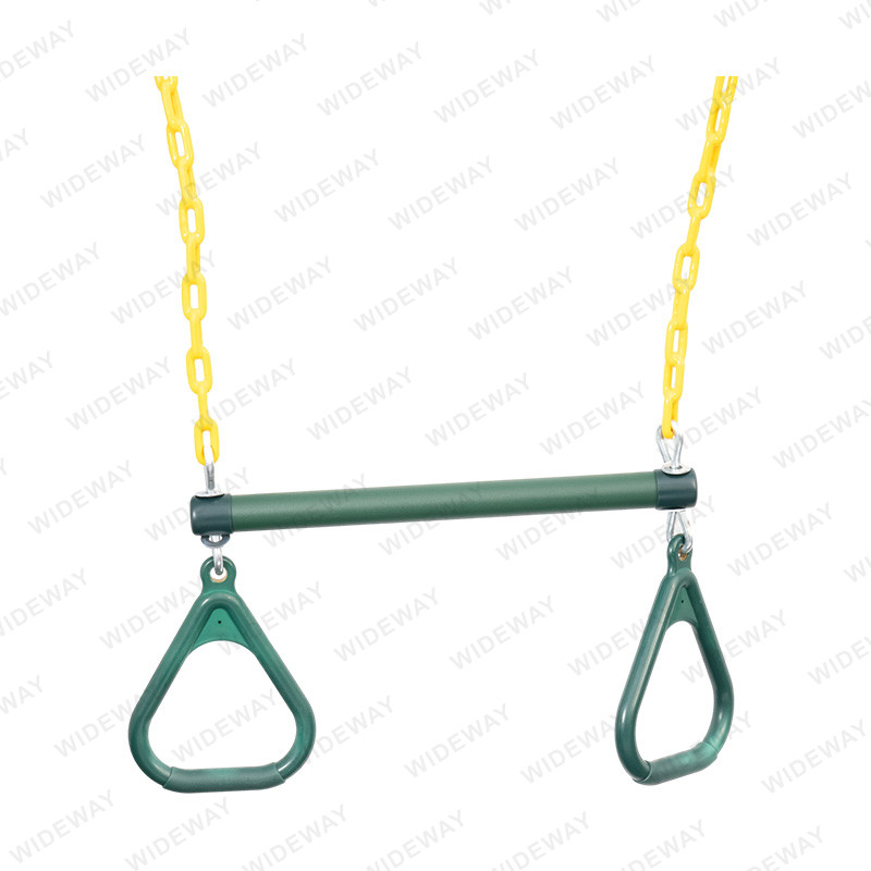 Swing Set အတွက် Trapeze Bar & Rings သည် အမြင့်ဆုံး ပံ့ပိုးမှုနှင့် တည်ငြိမ်မှုကို ပံ့ပိုးပေးသည့် ခိုင်ခံ့ပြီး သက်တောင့်သက်သာရှိသော ဒီဇိုင်းပါရှိသည်။ ကစားကွင်းမှာ ဆော့ကစားရတာကို နှစ်သက်တဲ့ ကလေးတွေအတွက် သင့်တော်ပါတယ်။ ထုတ်ကုန်သည် ၎င်းတို့၏ကိုယ်ပိုင်ကိုယ်အလေးချိန်ကို အသုံးပြု၍ လေ့ကျင့်ခန်းလုပ်ပြီး ကြံ့ခိုင်မှုအဆင့်မြှင့်တင်လိုသော အရွယ်ရောက်ပြီးသူများအတွက်လည်း ပြီးပြည့်စုံပါသည်။