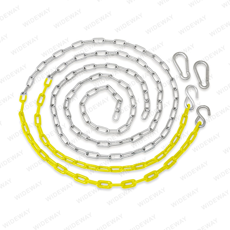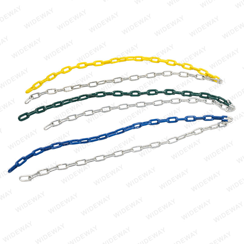 Vinyl Coated Swing Chain ကို ရွေးချယ်စရာ နှစ်ခု ရှိသည် - တစ်စိတ်တစ်ပိုင်း အုပ်ထားသော သို့မဟုတ် အပြည့်အဝ အုပ်ထားသော - ကလေးများ၏ လက်ချောင်းများသည် ကွင်းဆက်များကြားတွင် ဖမ်းမိသောအခါ ဖြစ်ပွားနိုင်သည့် လက်ဒဏ်ရာများကို လျှော့ချရာတွင် ထိရောက်မှု နှစ်မျိုးရှိသည်။ ၎င်း၏ဆွဲဆောင်မှုရှိသောအရောင်များနှင့် စိတ်ကြိုက်ပြင်ဆင်နိုင်သောရွေးချယ်မှုများဖြင့် ဤလွှဲကွင်းဆက်ကိရိယာအစုံသည် မည်သည့်ကစားကွင်း သို့မဟုတ် အိမ်နောက်ဖေးကိုမဆို ချောမွေ့စွာ လိုက်ဖက်နိုင်ပါသည်။